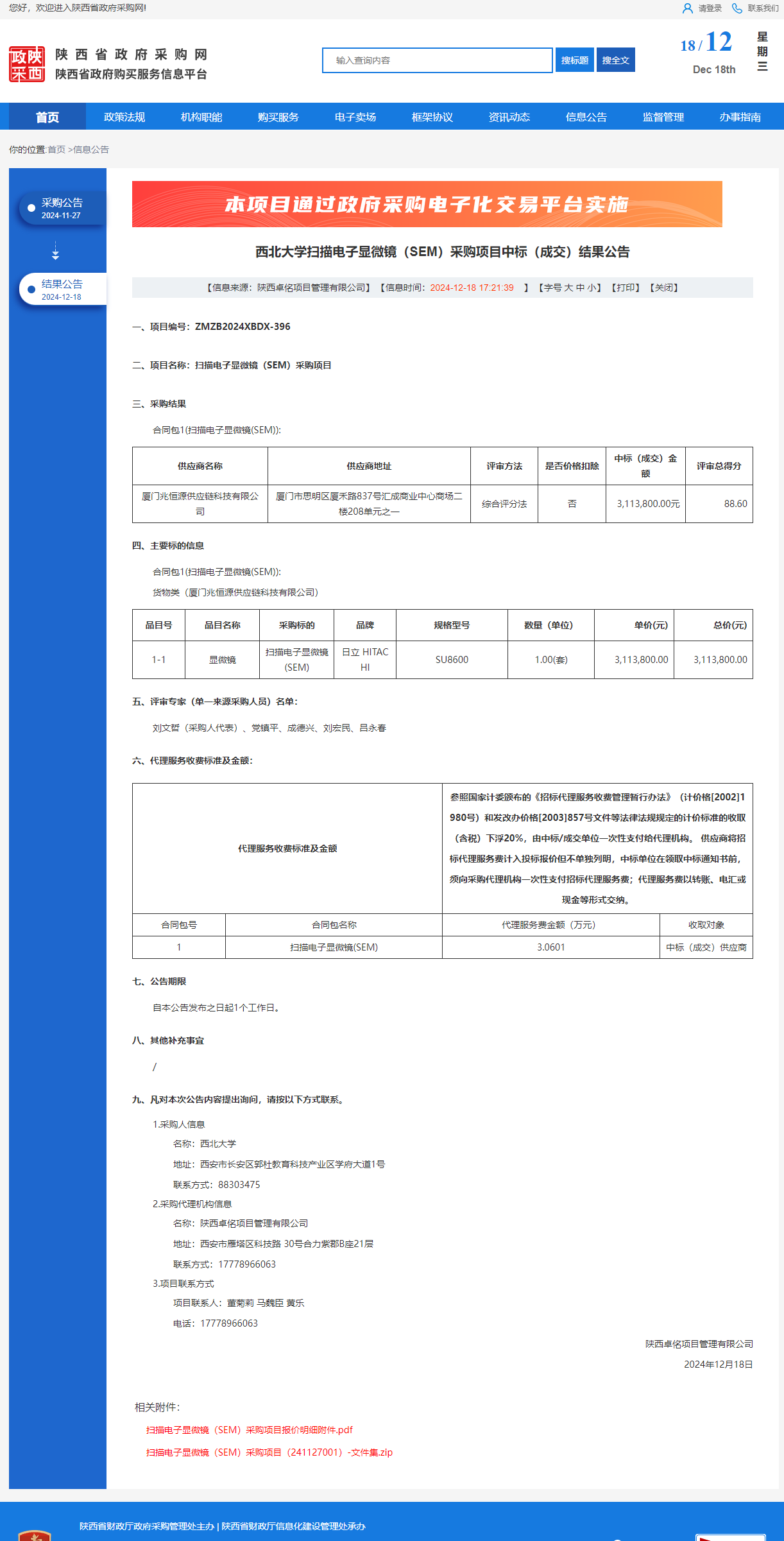 伟德国际1949始于英国扫描电子显微镜(SEM)采购项目中标(成交)结果公告 作者:采购与招标办公室 编辑: 时间:2024-12-18 原公告链接:https://www.ccgp-shaanxi.gov.cn/freecms/site/shaanxi/ggxx/info/2024/8a69c95d921859f00193d90183470ad8.html?noticeType=001021¬iceId=1e709926-bd23-11ef-8063-08c0eb20c666