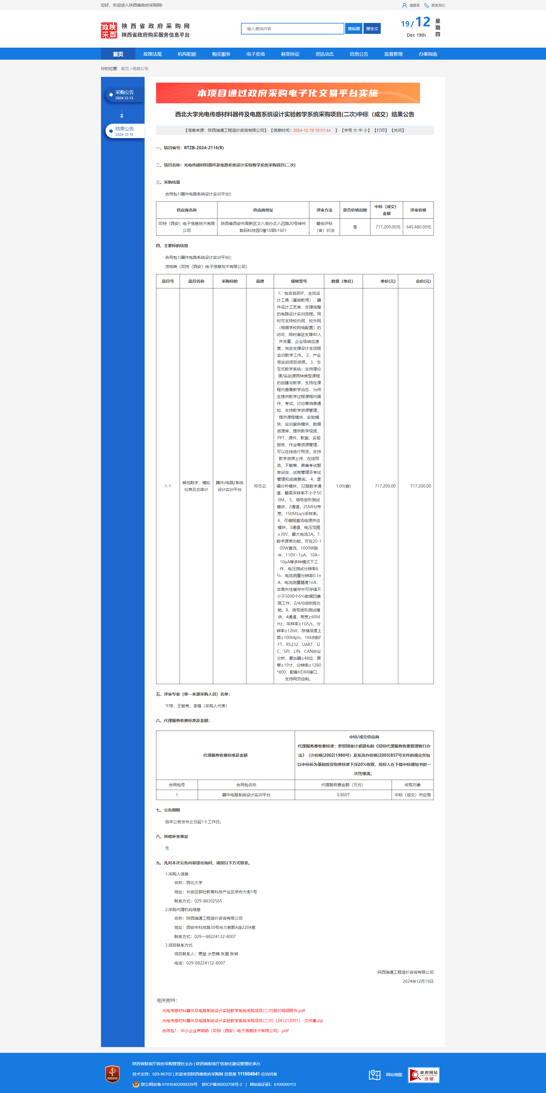 伟德国际1949始于英国光电传感材料器件及电路系统设计实验教学系统采购项目(二次)中标(成交)结果公告