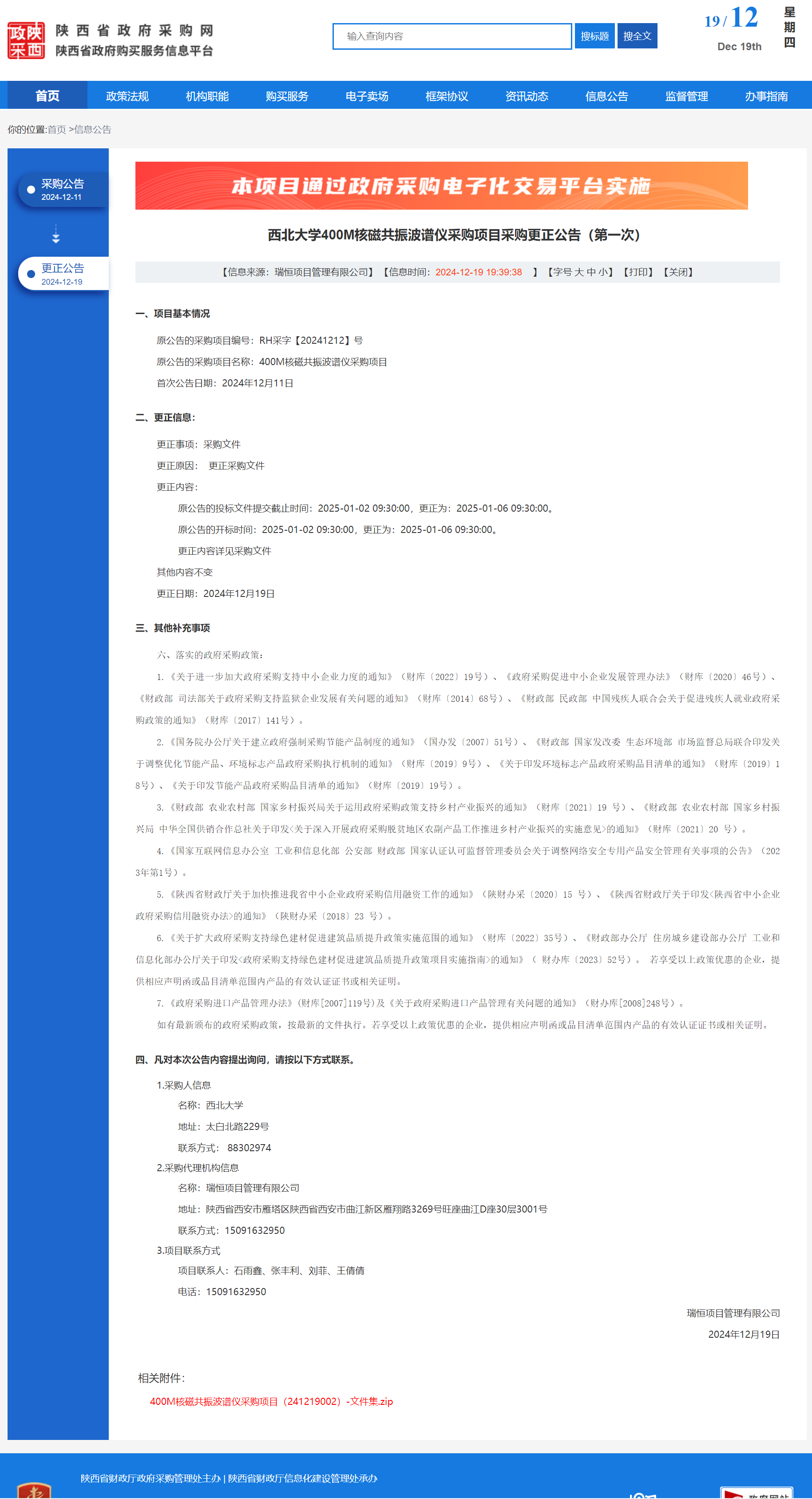 伟德国际1949始于英国400M核磁共振波谱仪采购项目采购更正公告(第一次) 作者:采购与招标办公室 编辑: 时间:2024-12-19 原公告链接:https://www.ccgp-shaanxi.gov.cn/freecms/site/shaanxi/ggxx/info/2024/8a69c44e9218572b0193dea841d35edb.html?noticeType=001031¬iceId=90038807-bdff-11ef-8063-08c0eb20c666