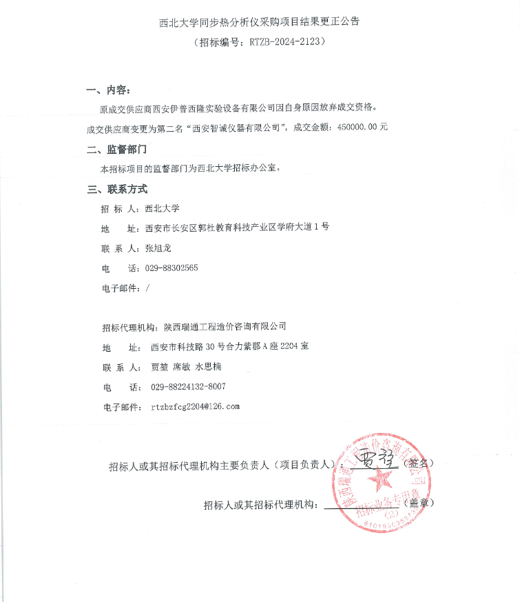 伟德国际1949始于英国同步热分析仪采购项目结果更正公告