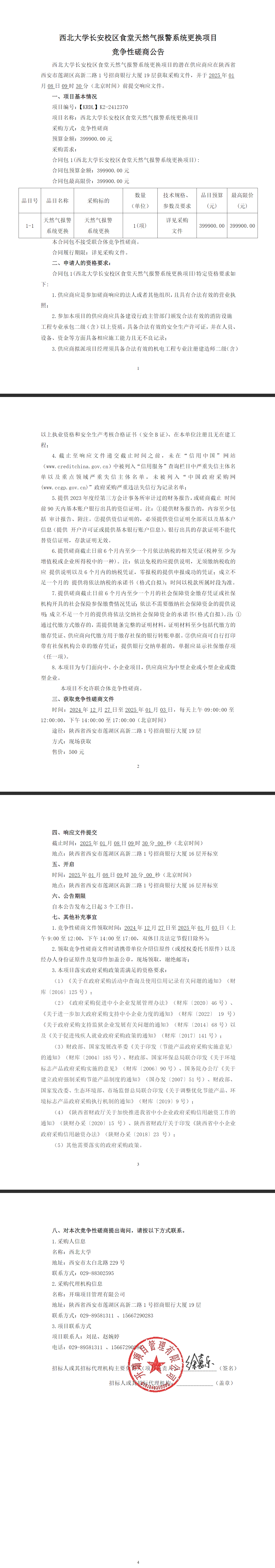 伟德国际1949始于英国长安校区食堂天然气报警系统更换项目竞争性磋商公告