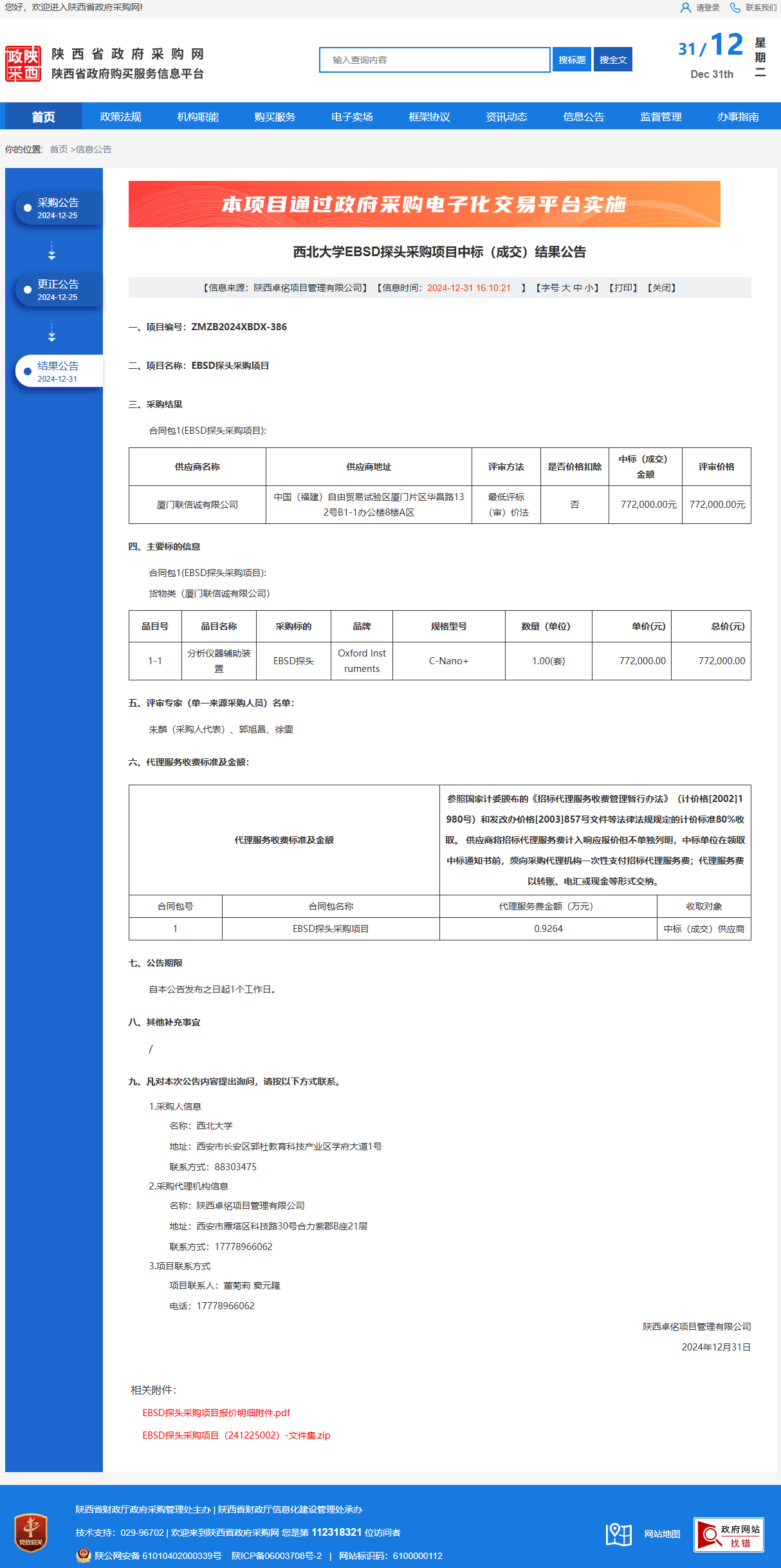 伟德国际1949始于英国EBSD探头采购项目中标(成交)结果公告 作者:采购与招标办公室 编辑: 时间:2024-12-31 原公告链接:https://www.ccgp-shaanxi.gov.cn/freecms/site/shaanxi/ggxx/info/2024/8a69c44e9218572b01941bbf3cfd0e2a.html?noticeType=001023¬iceId=56151531-c750-11ef-8063-08c0eb20c666