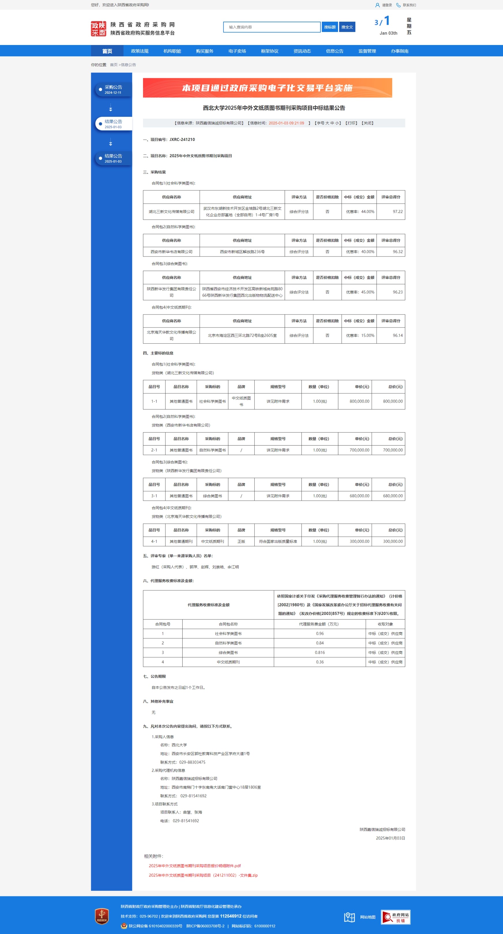 伟德国际1949始于英国2025年中外文纸质图书期刊采购项目中标结果公告 作者: 编辑:薛利娟 时间:2025-01-03 原公告链接:https://www.ccgp-shaanxi.gov.cn/freecms/site/shaanxi/ggxx/info/2025/8a69c95d921859f0019429b635ac1b8f.html?noticeType=001021¬iceId=ac9e64e8-c972-11ef-8063-08c0eb20c666