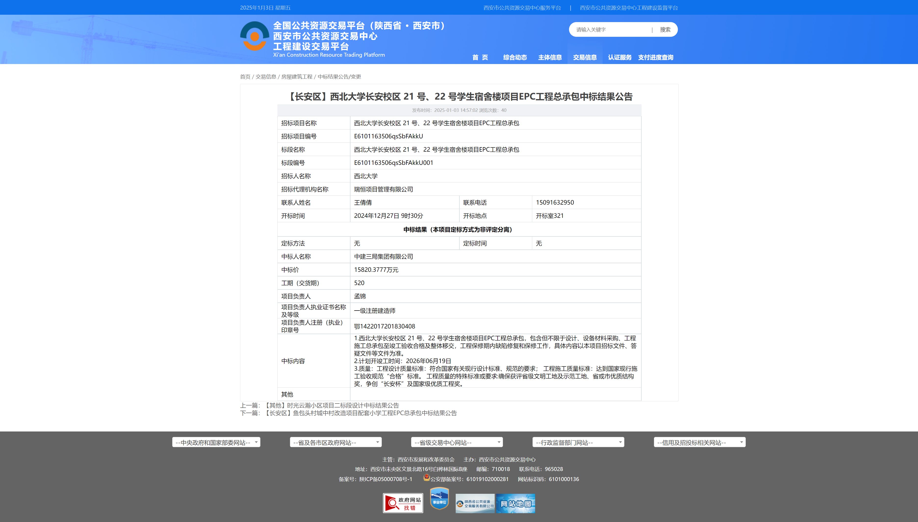 伟德国际1949始于英国长安校区21号、22号学生宿舍楼项目EPC工程总承包中标结果公告