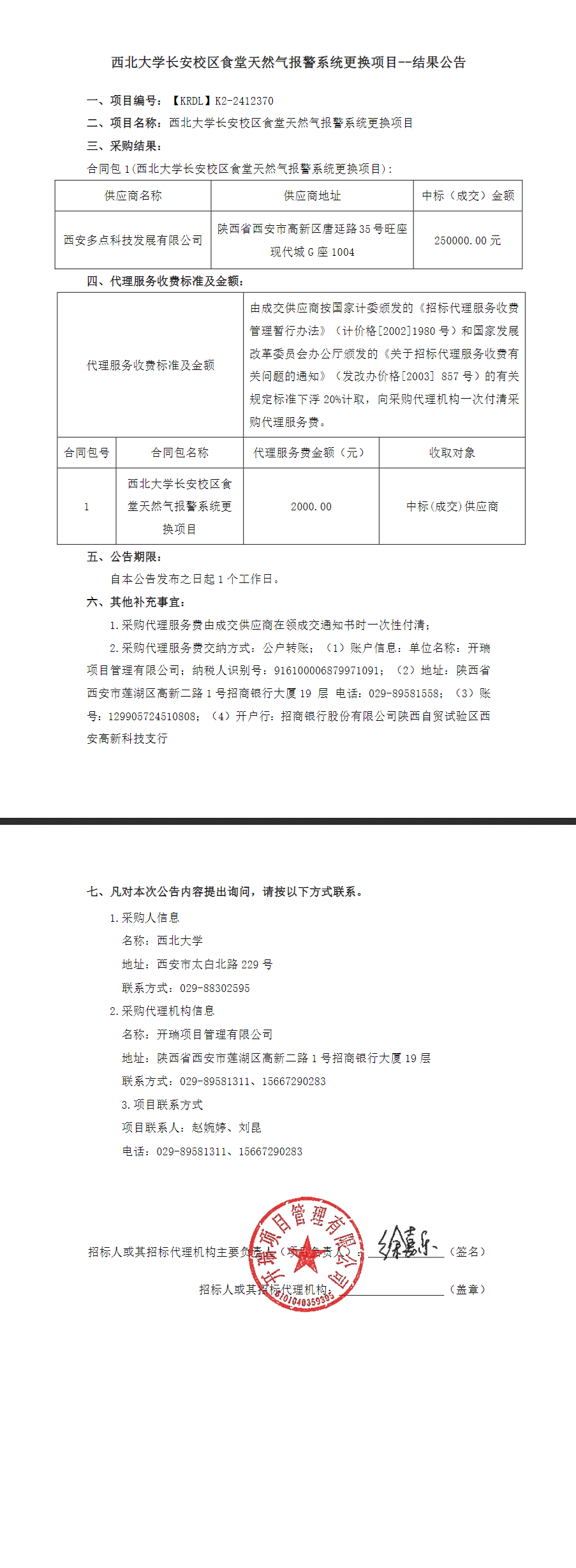伟德国际1949始于英国长安校区食堂天然气报警系统更换项目结果公告