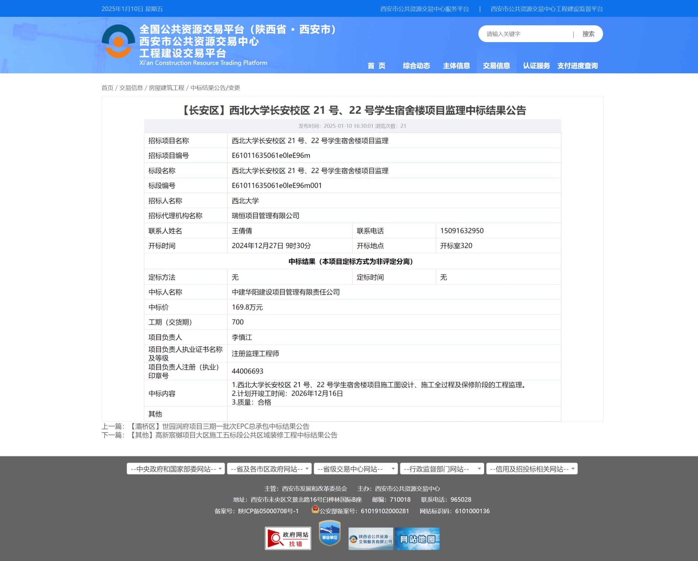 伟德国际1949始于英国长安校区 21 号、22 号学生宿舍楼项目监理中标结果公告