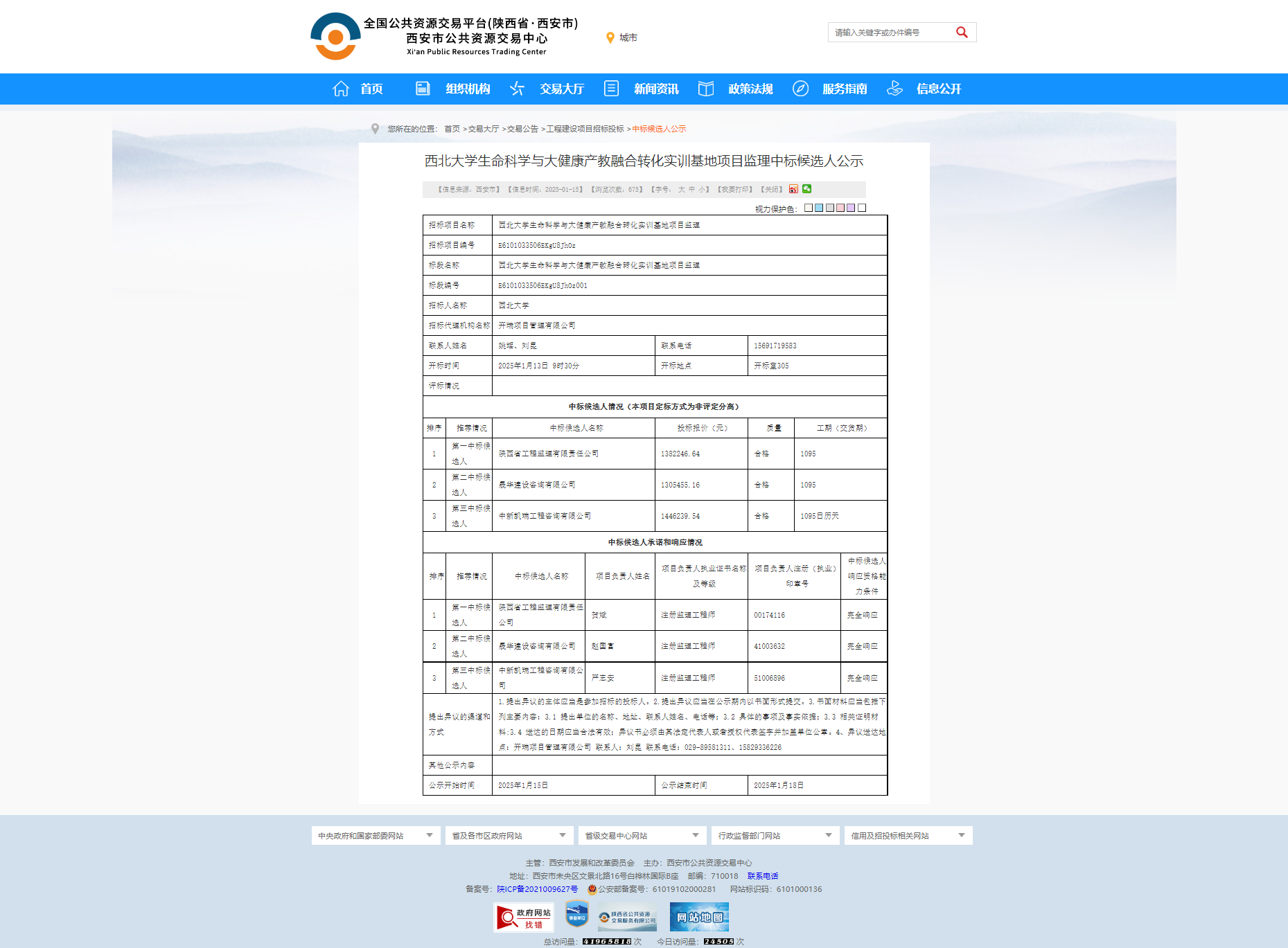 伟德国际1949始于英国生命科学与大健康产教融合转化实训基地项目监理中标候选人公示