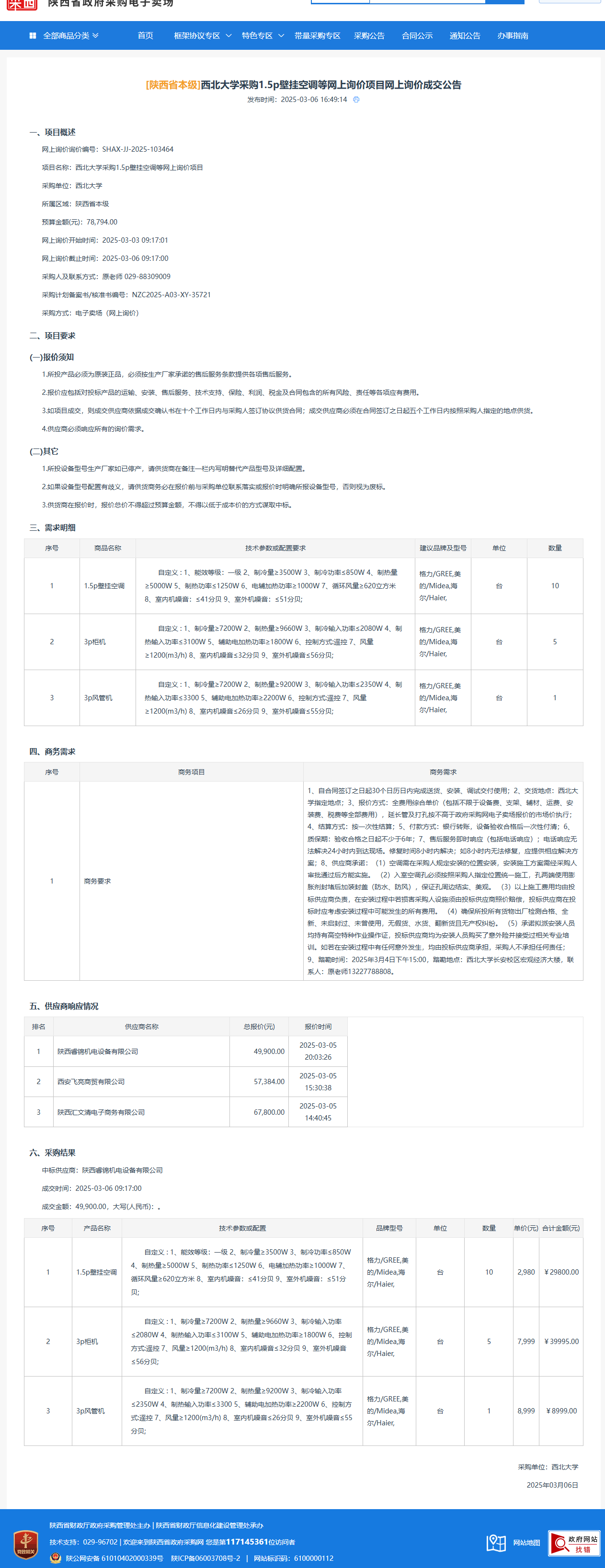 伟德国际1949始于英国采购1.5p壁挂空调等网上询价项目(网上询价)成交公告 作者:采购与招标办公室 编辑: 时间:2025-03-06 原公告链接:https://www.ccgp-shaanxi.gov.cn/gpmall-main-web/basic/noticeDetail?noticeGuid=7296717914839908352