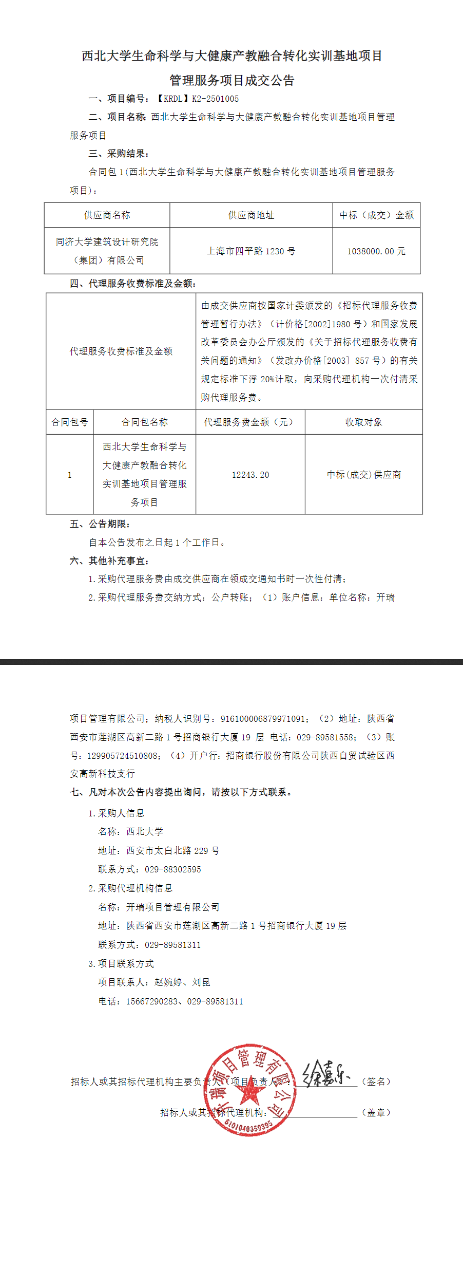 伟德国际1949始于英国生命科学与大健康产教融合转化实训基地项目管理服务项目成交公告