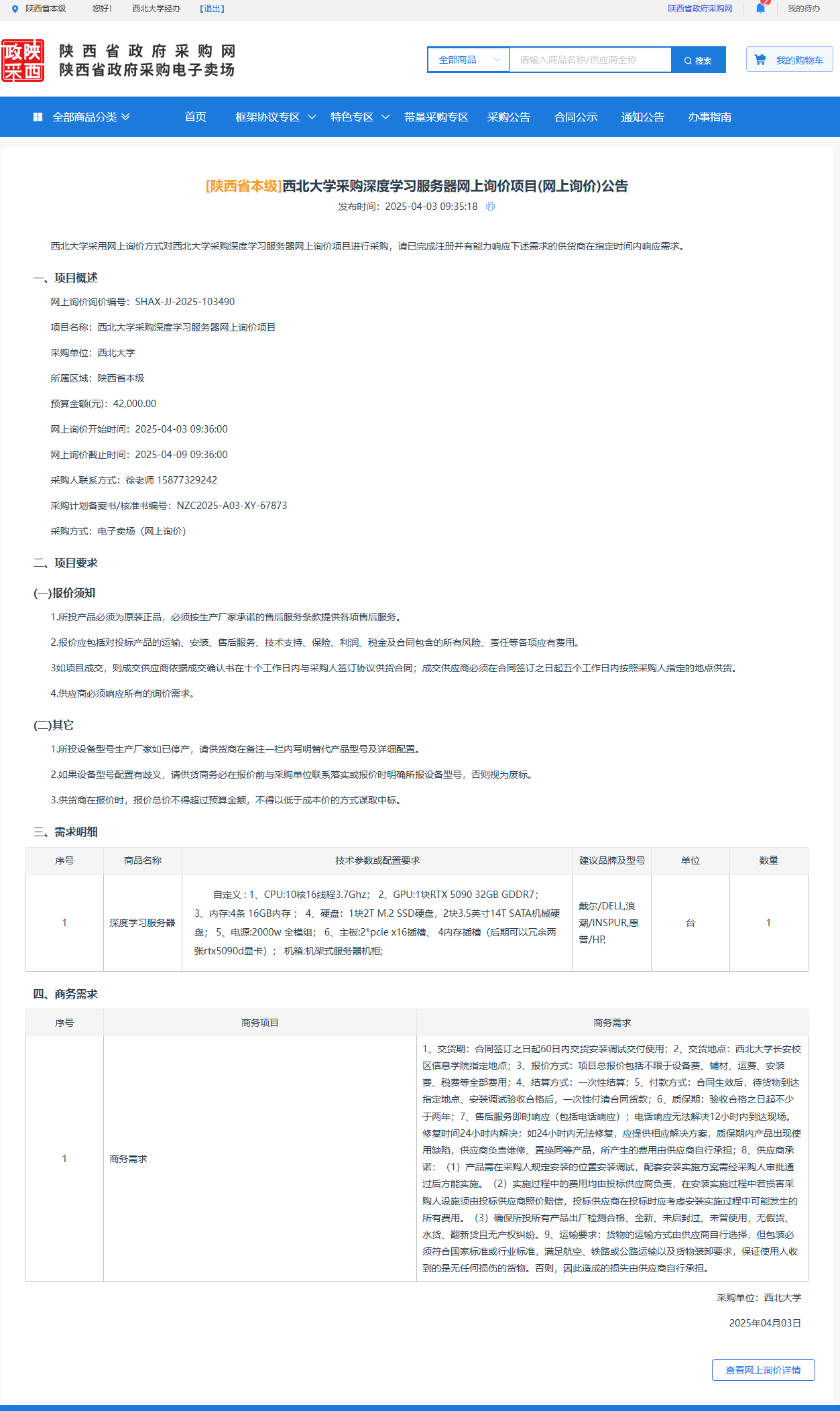 伟德国际1949始于英国采购深度学习服务器网上询价项目(网上询价)公告 作者:采购与招标办公室 编辑: 时间:2025-04-03 原公告链接:https://www.ccgp-shaanxi.gov.cn/gpmall-main-web/basic/noticeDetail?noticeGuid=7306755570823004160