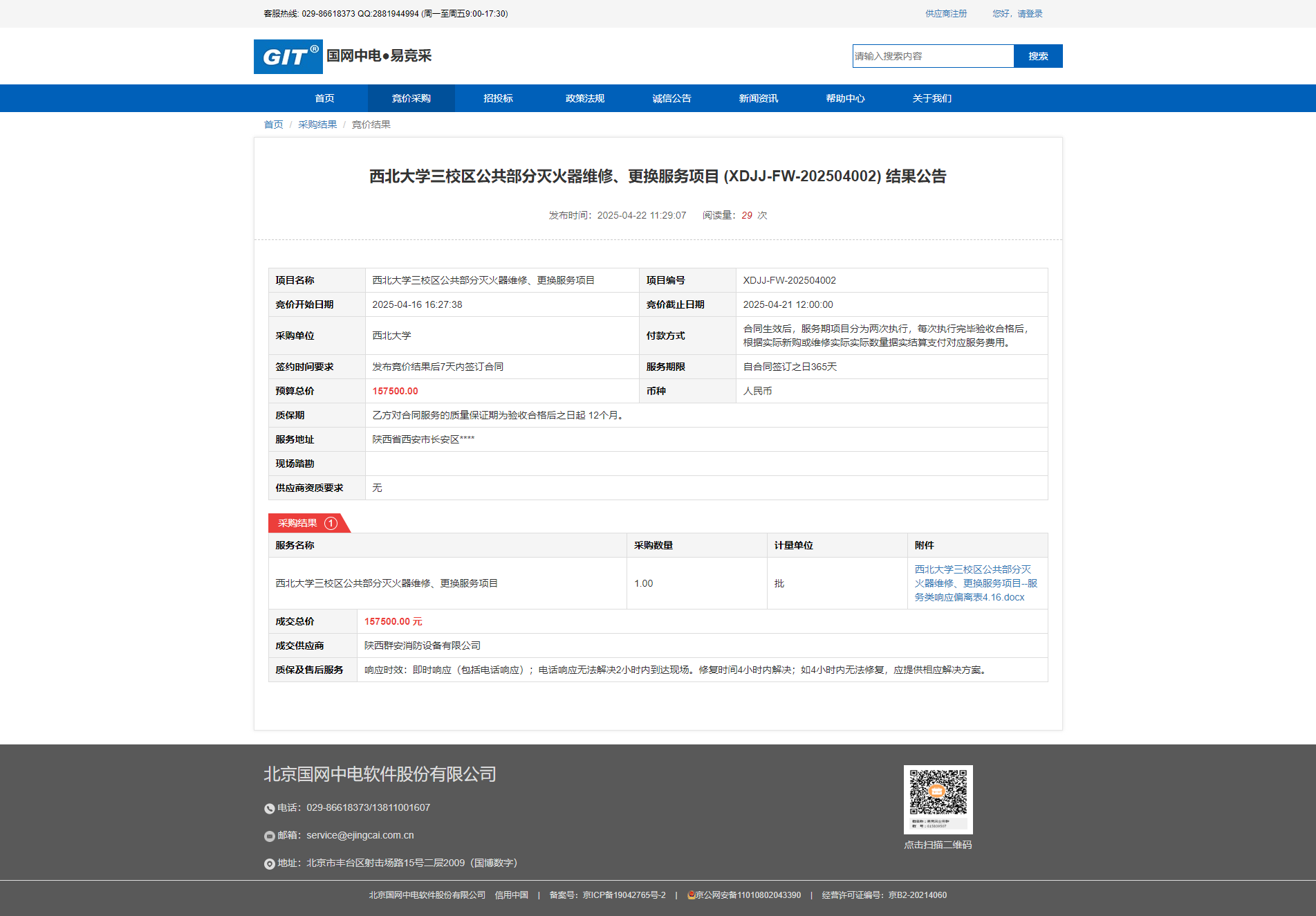 伟德国际1949始于英国三校区公共部分灭火器维修、更换服务项目 (XDJJ-FW-202504002) 结果公告