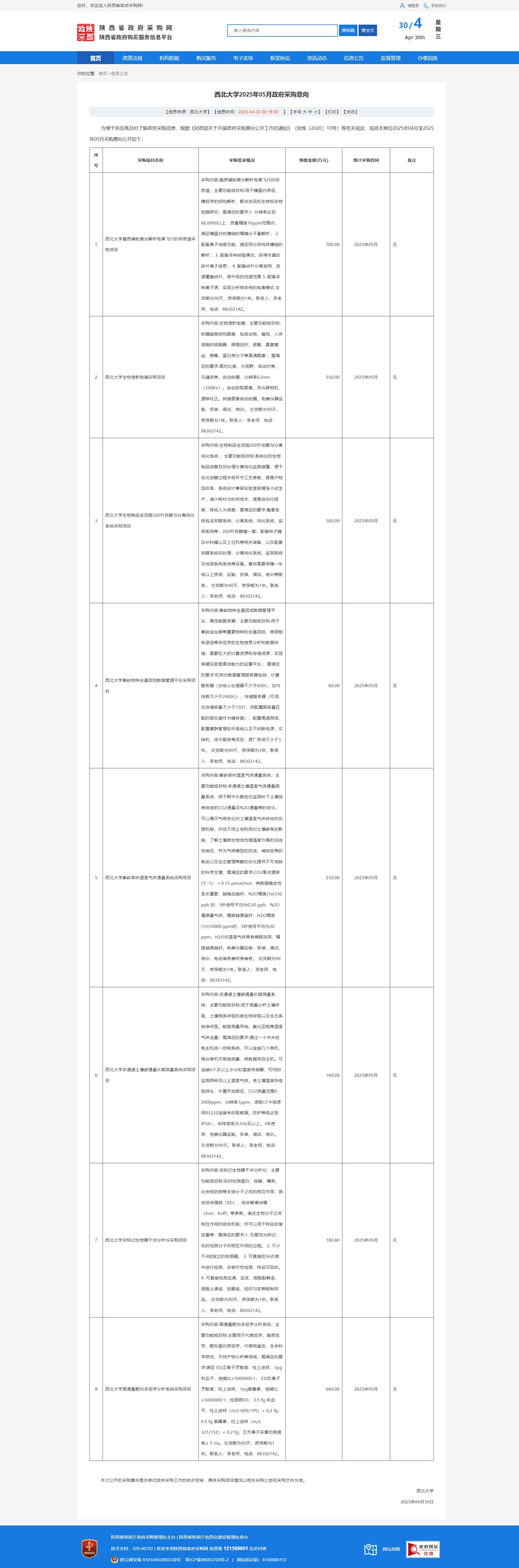 伟德国际1949始于英国2025年05月政府采购意向(生命科学学院) 作者: 编辑:采购与招标办公室 时间:2025-04-30 原公告链接:https://www.ccgp-shaanxi.gov.cn/freecms/site/shaanxi/ggxx/info/2025/8a69c1879656b6c301967b16d4213330.html?noticeType=59¬iceId=2c5b777a-255a-11f0-8063-08c0eb20c666