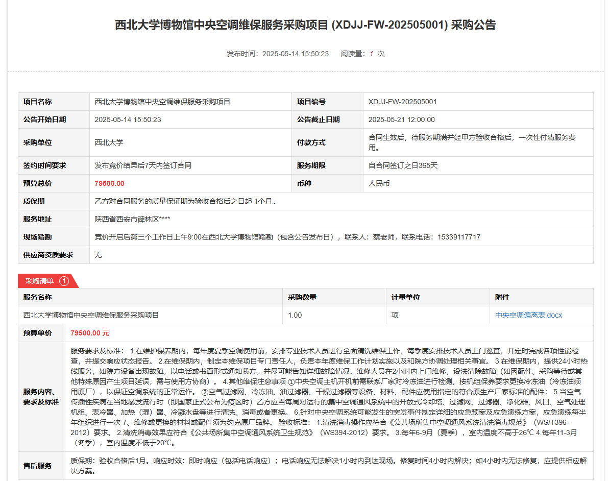 伟德国际1949始于英国博物馆中央空调维保服务采购项目(XDJJ-FW-202505001)竞价采购公告 作者:采购与招标办公室 编辑: 时间:2025-05-14 原公告链接:https://www.ejingcai.com.cn/site/bidding/detail/18217
