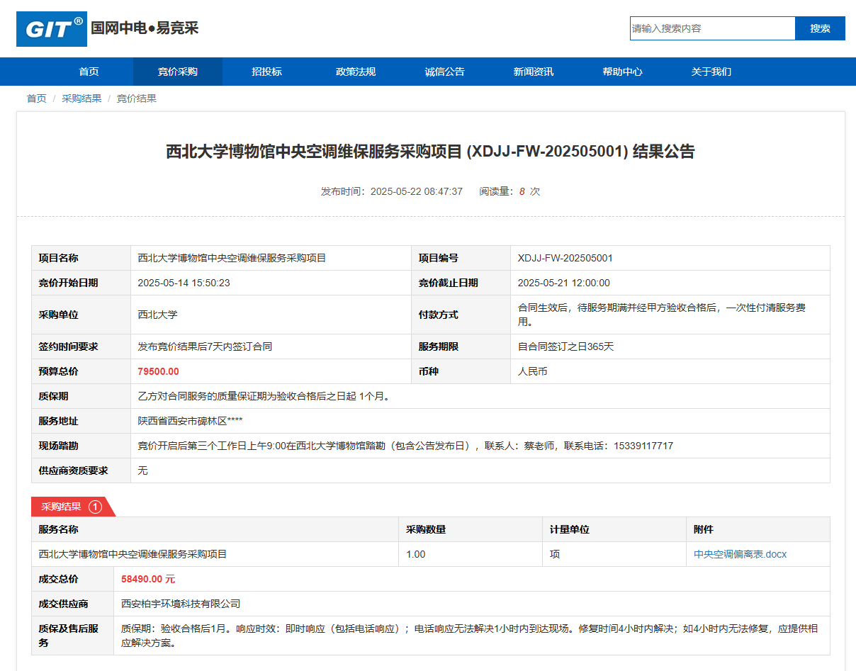 伟德国际1949始于英国博物馆中央空调维保服务采购项目(XDJJ-FW-202505001)竞价结果公告 作者:采购与招标办公室 编辑: 时间:2025-05-22 原公告链接:https://www.ejingcai.com.cn/site/bidding/detail/18384