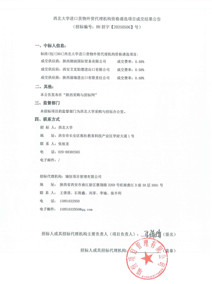 伟德国际1949始于英国进口货物外贸代理机构资格遴选项目成交结果公告