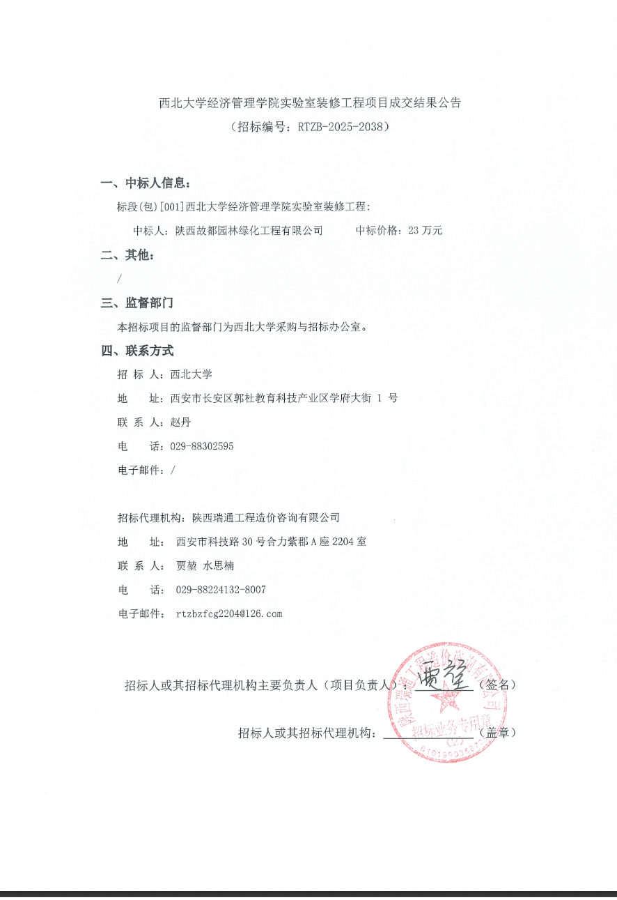 伟德国际1949始于英国长安校区公共教学楼部分消防管道维修更换项目(XDJJ-GC-202506001)竞价结果公告