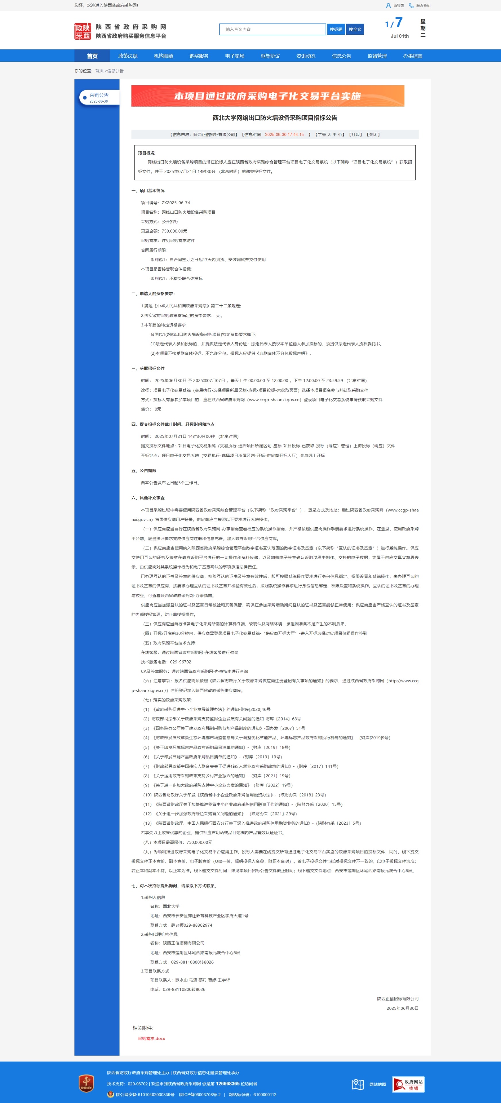 伟德国际1949始于英国网络出口防火墙设备采购项目招标公告 作者: 编辑:采购与招标办公室 时间:2025-07-01 原公告链接:https://www.ccgp-shaanxi.gov.cn/freecms/site/shaanxi/ggxx/info/2025/8a69c2ef97af7dd30197c01b7ca54817.html?noticeType=001011¬iceId=c6225ff7-5598-11f0-8063-08c0eb20c666