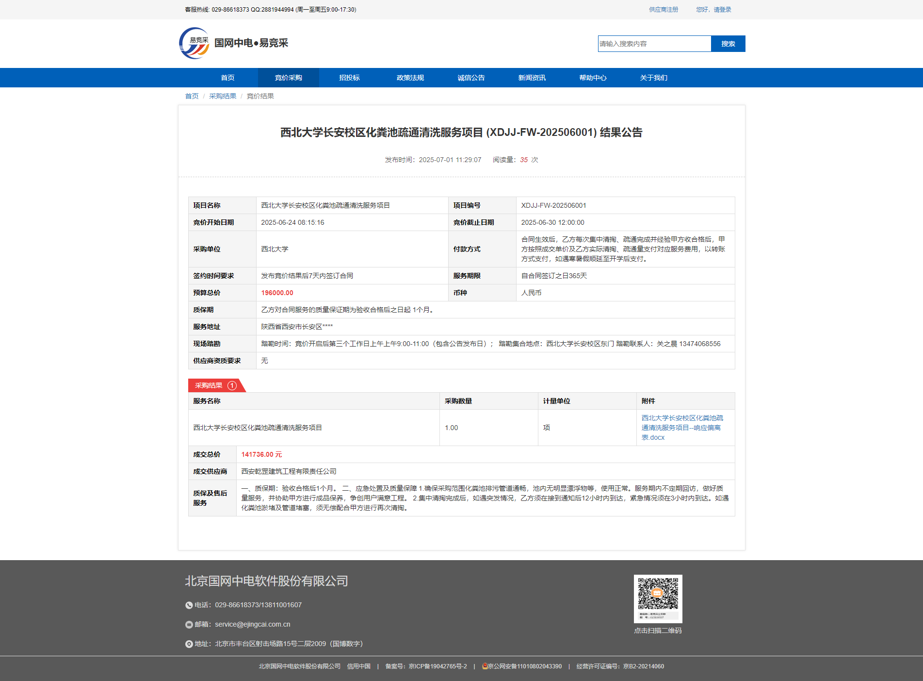 伟德国际1949始于英国长安校区化粪池疏通清洗服务项目 (XDJJ-FW-202506001) 结果公告