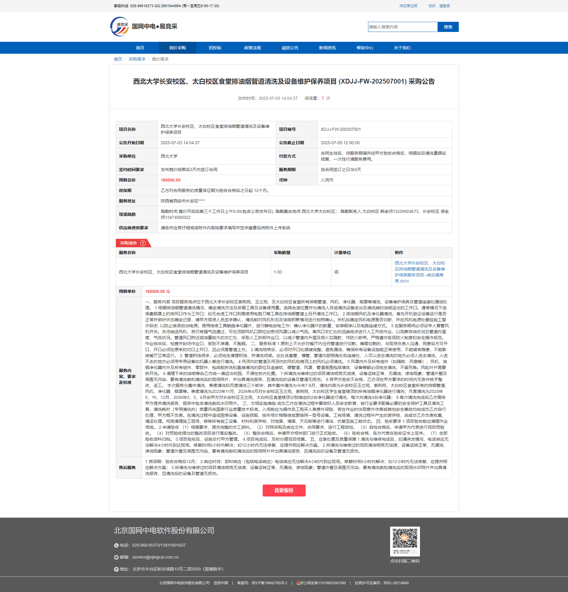 伟德国际1949始于英国长安校区、太白校区食堂排油烟管道清洗及设备维护保养项目 (XDJJ-FW-202507001) 采购公告 作者:采购与招标办公室 编辑:张旭龙 时间:2025-07-03 原链接地址