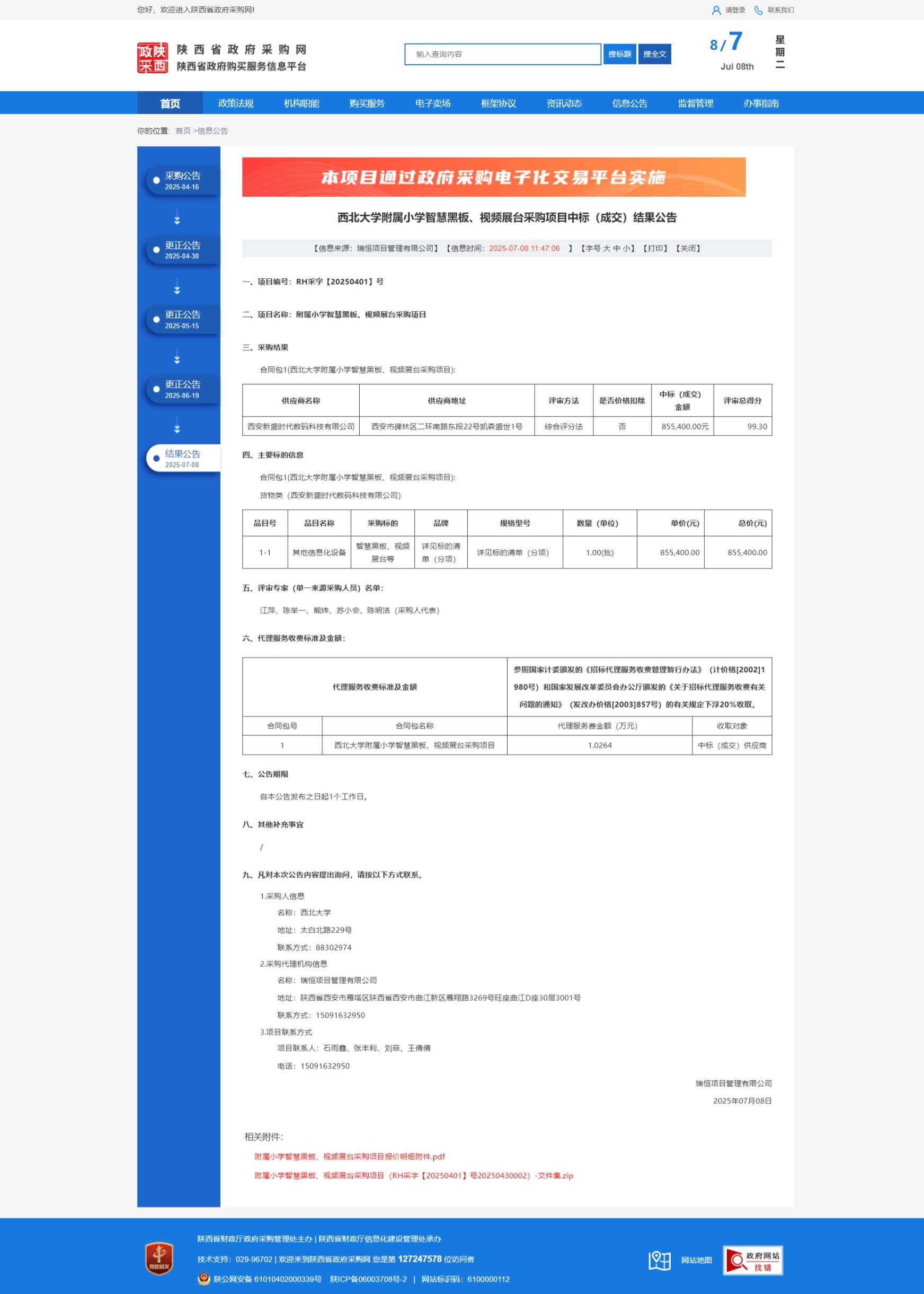 伟德国际1949始于英国附属小学智慧黑板、视频展台采购项目中标(成交)结果公告 作者: 编辑:采购与招标办公室 时间:2025-07-08 原公告链接:https://www.ccgp-shaanxi.gov.cn/freecms/site/shaanxi/ggxx/info/2025/8a69c0bc97db81390197e819c3dd4789.html?noticeType=001021¬iceId=37da8661-5bb0-11f0-8063-08c0eb20c666