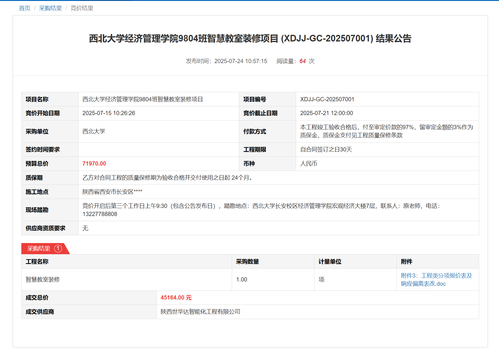 伟德国际1949始于英国经济管理学院9804班智慧教室装修项目(XDJJ-GC-202507001)竞价结果公告 作者: 编辑: 时间:2025-07-24 原公告链接:https://www.ejingcai.com.cn/site/bidding/detail/19710