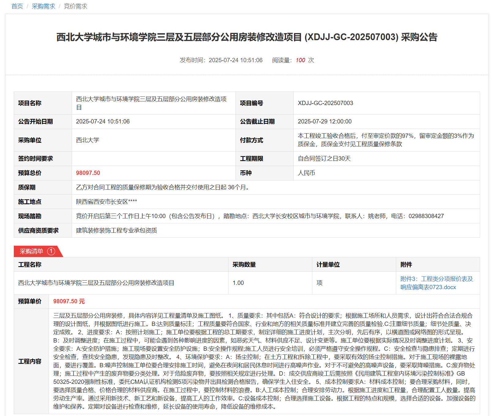 伟德国际1949始于英国城市与环境学院三层及五层部分公用房装修改造项目(XDJJ-GC-202507003)竞价采购公告 作者:采购与招标办公室 编辑: 时间:2025-07-24 原公告链接:https://www.ejingcai.com.cn/site/bidding/detail/19707