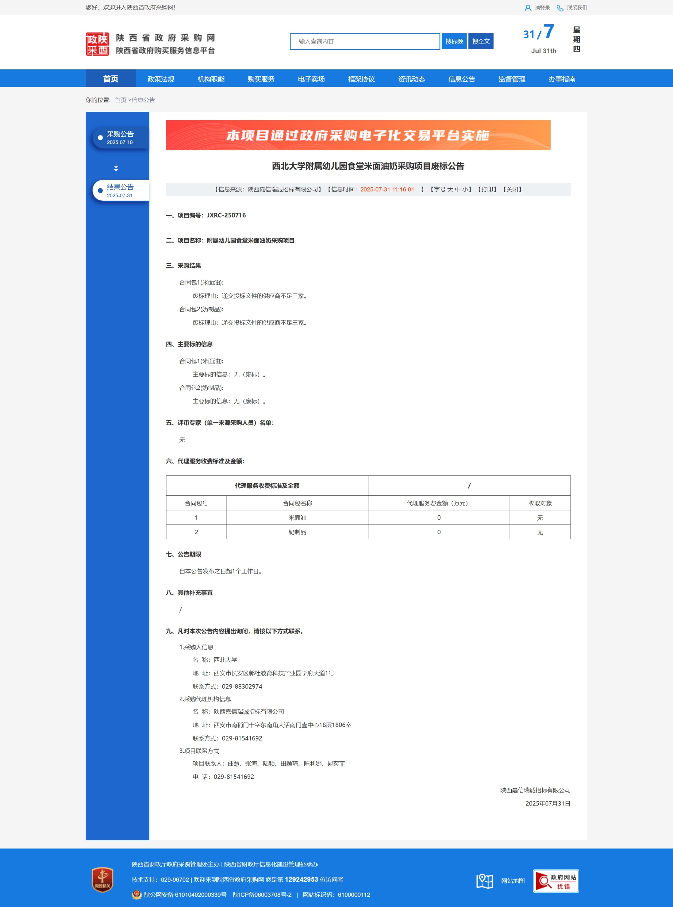 伟德国际1949始于英国附属幼儿园食堂米面油奶采购项目废标公告 作者: 编辑:采购与招标办公室 时间:2025-07-31 原公告链接:https://www.ccgp-shaanxi.gov.cn/freecms/site/shaanxi/ggxx/info/2025/8a69c0c7985e48f501985e6d02b81fb9.html?noticeType=001006¬iceId=b9835470-6dbe-11f0-8063-08c0eb20c666