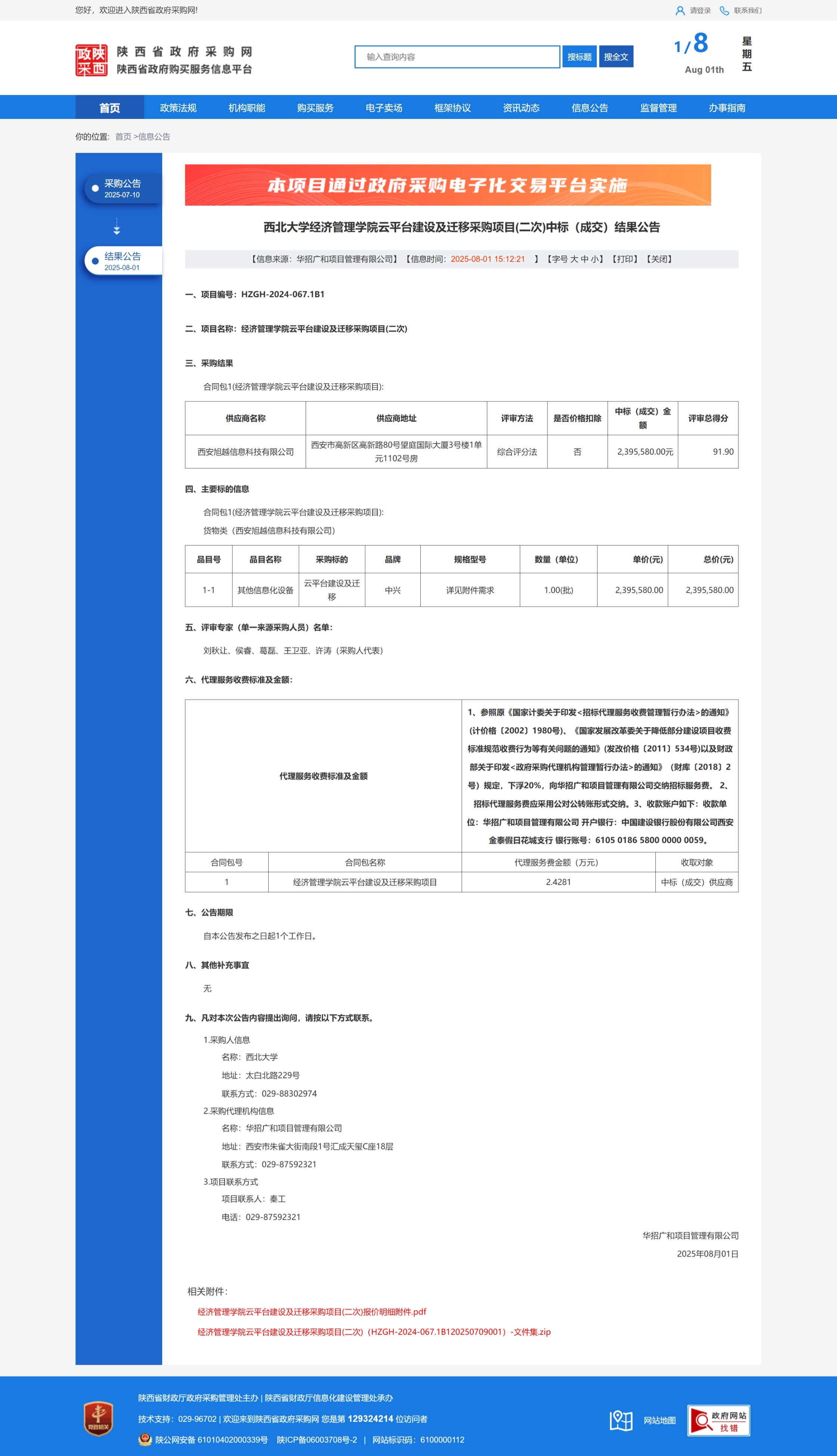 伟德国际1949始于英国经济管理学院云平台建设及迁移采购项目(二次)中标(成交)结果公告 作者: 编辑:采购与招标办公室 时间:2025-08-01 原公告链接:https://www.ccgp-shaanxi.gov.cn/freecms/site/shaanxi/ggxx/info/2025/8a69c6959860f2ce01986101532605f6.html?noticeType=001021¬iceId=e8cedee8-6ea8-11f0-8063-08c0eb20c666