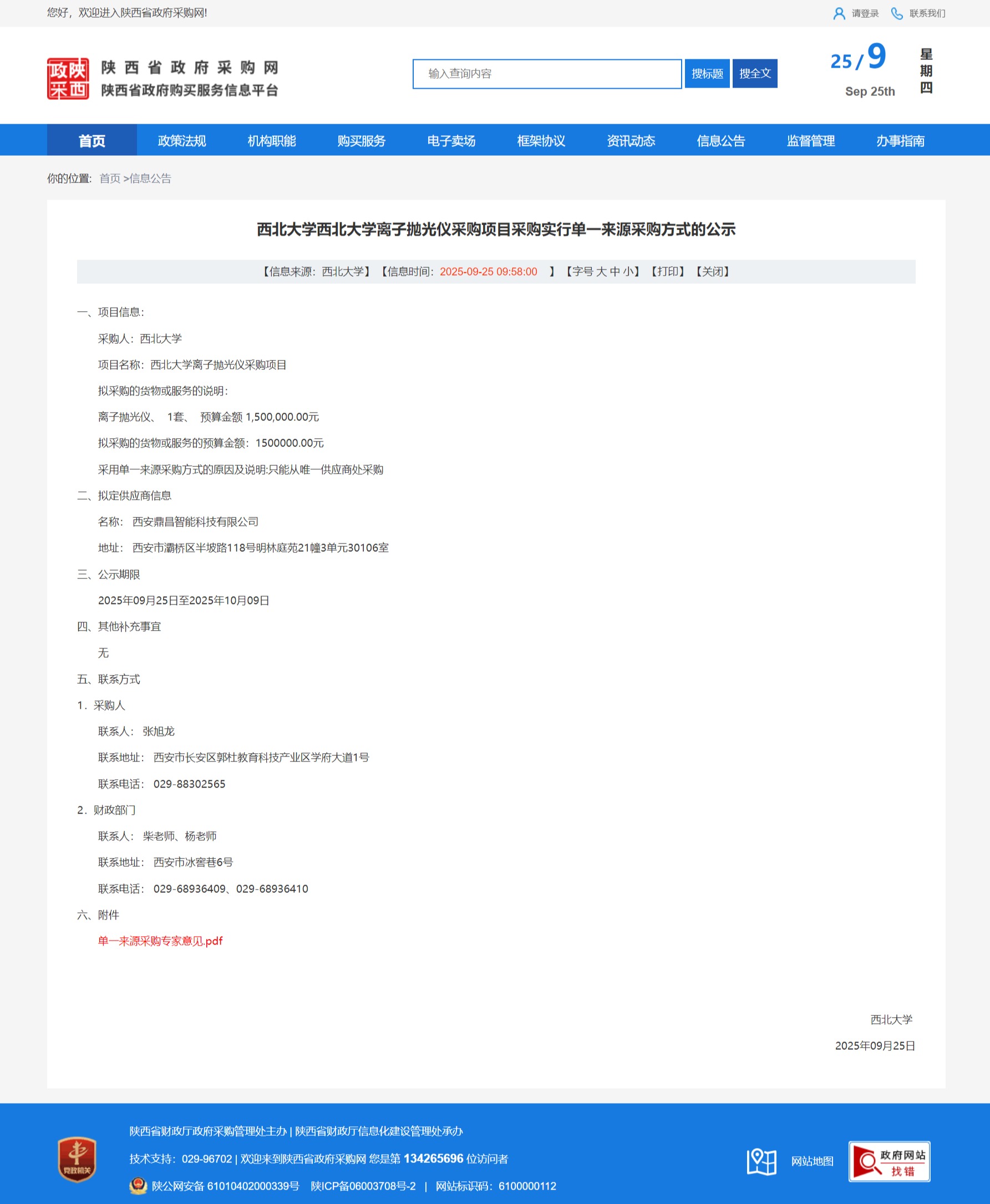 伟德国际1949始于英国离子抛光仪采购项目实行单一来源采购方式的公示