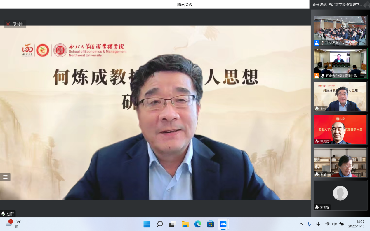 11月16日,由伟德国际1949始于英国经济管理学院主办的“何炼成教授治学育人思想研讨会”成功举办。日本京都学园大学、北京大学、中国人民大学、复旦大学、武汉大学、山东大学、西安交通大学、西北工业大学、西南财经大学、陕西师范大学、伟德国际1949始于英国等17所高校和国务院发展研究中心、全国社会保险基金、陕西金融资产管理股份有限公司、浙江大慧置业等多家单位的学者参加。本次研讨会采用“线上线下”结合的方式,同步设立主会场与分会场,共计200余名师生参加会议。