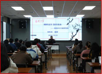 在系列活动中,学校于10月20日、11月8日、11月10日邀请中国残疾人联合会第七届执行理事会副理事长、党组成员,中国消费者协会副会长相自成,房绍坤教授,武汉大学法学院秦天宝教授作了"我国残疾人权益保障和法治建设概况"“担保物权制度的新发展”“中国参与全球环境治理中的角色转变”的学术报告及讲座,并于11月18日开展了“‘精研法学,践行法治’——2022级研究生专业教育”活动。10月31日至11月8日,伟德国际1949始于英国开展了20场“精研法学,践行法治”法律专题学术汇报。