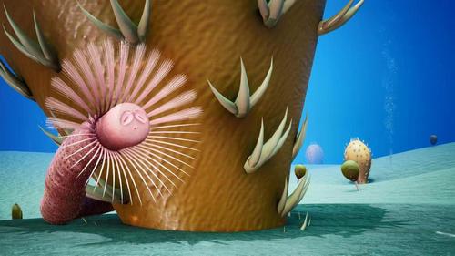 寒武纪澄江拟管虫的模拟复原图。