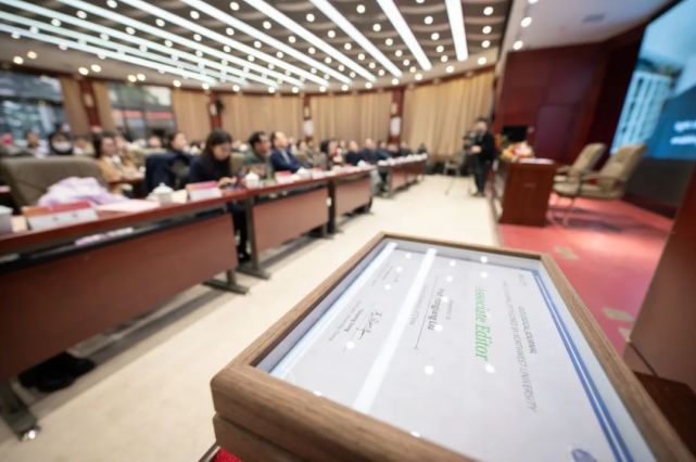 吴燕、常江分别为期刊共同主编董云鹏、期刊编辑指导M. Santosh教授、线下参会期刊副主编颁发聘书和纪念品。