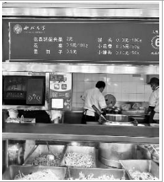 在面食窗口里的酸汤面、葱油面都是3元一碗。该窗口的工作人员告诉记者,这个窗口最受欢迎的是剁椒面、干拌面、炸酱面,这两种3元面每天大概能卖出去10余碗,高峰的时候,能卖出去20-30碗。