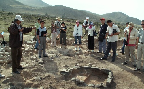 中亚考古队向当地官员介绍工地情况