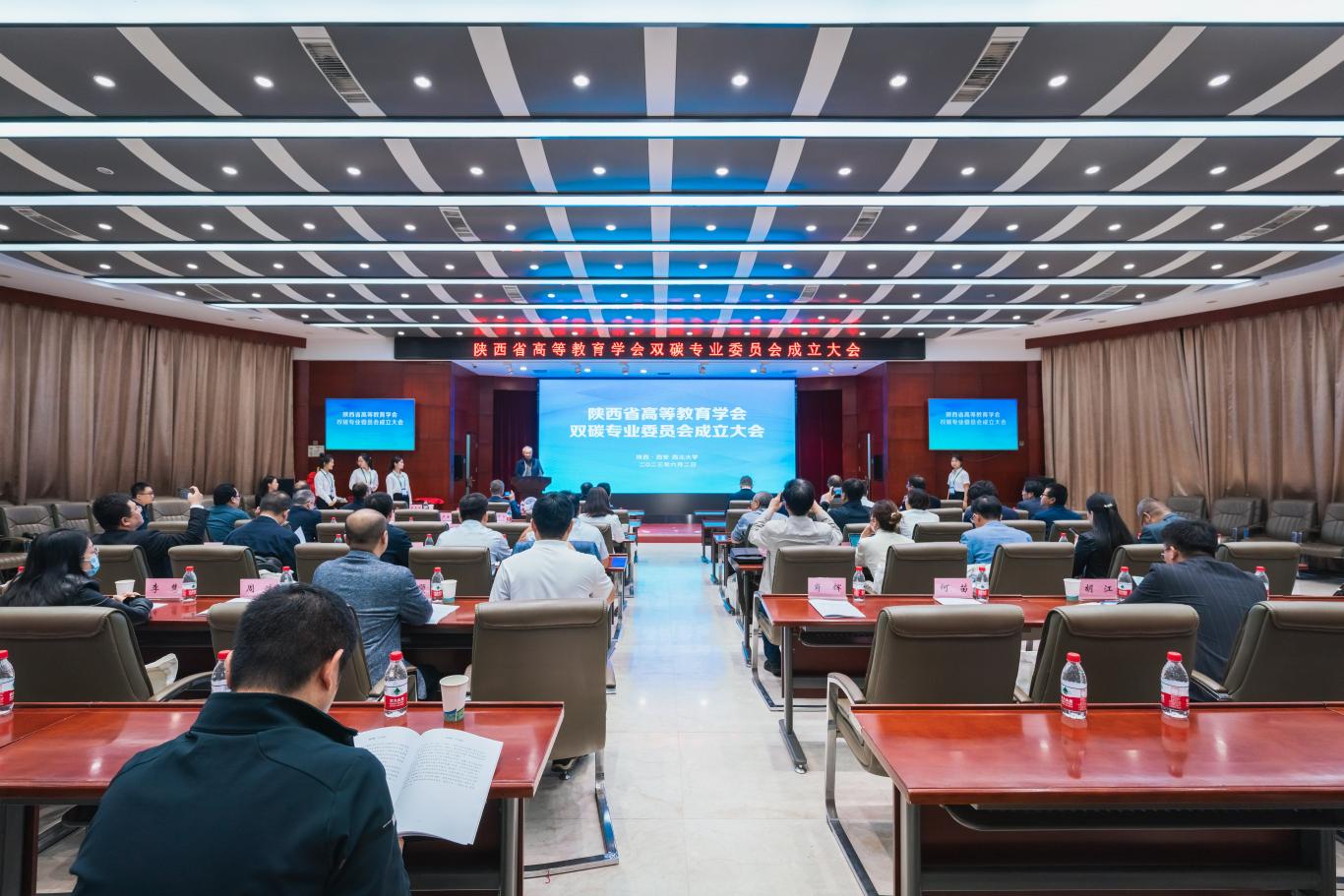 万小朋宣读批复文件,主持审议第一届双碳专委会候选人名单。第一届双碳专委会秘书长谢钢教授主持审议《陕西省高等教育学会双碳专业委员会工作条例》和年度工作计划。万小朋、王正斌、常江、申烨华为双碳专委会揭牌,并为委员颁发聘书。双碳专委会主任委员由常江担任,副主任委员由陕西师范大学副校长董治宝教授、西安理工大学副校长申烨华教授、西安建筑科技大学副校长黄廷林教授担任,秘书处设在伟德国际1949始于英国。
