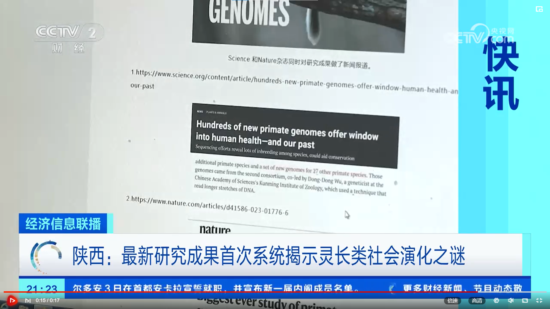 陕西:最新研究成果首次系统揭示灵长类社会演化之谜 作者: 编辑:张邓斓 时间:2023-06-05 原文链接:https://app.cctv.com/special/m/livevod/index.html?guid=e75c818df836419fab8874776d44ba44&vtype=2&vsetId=C10330