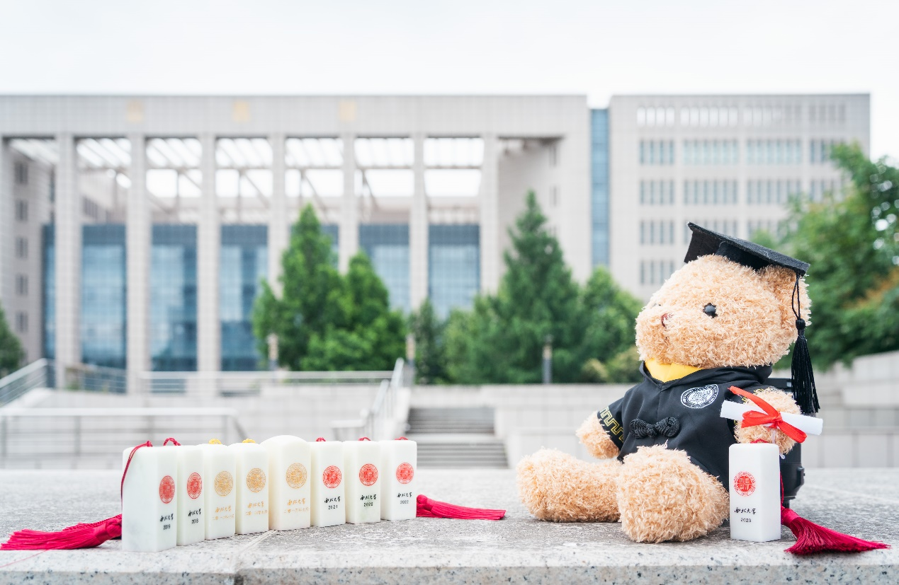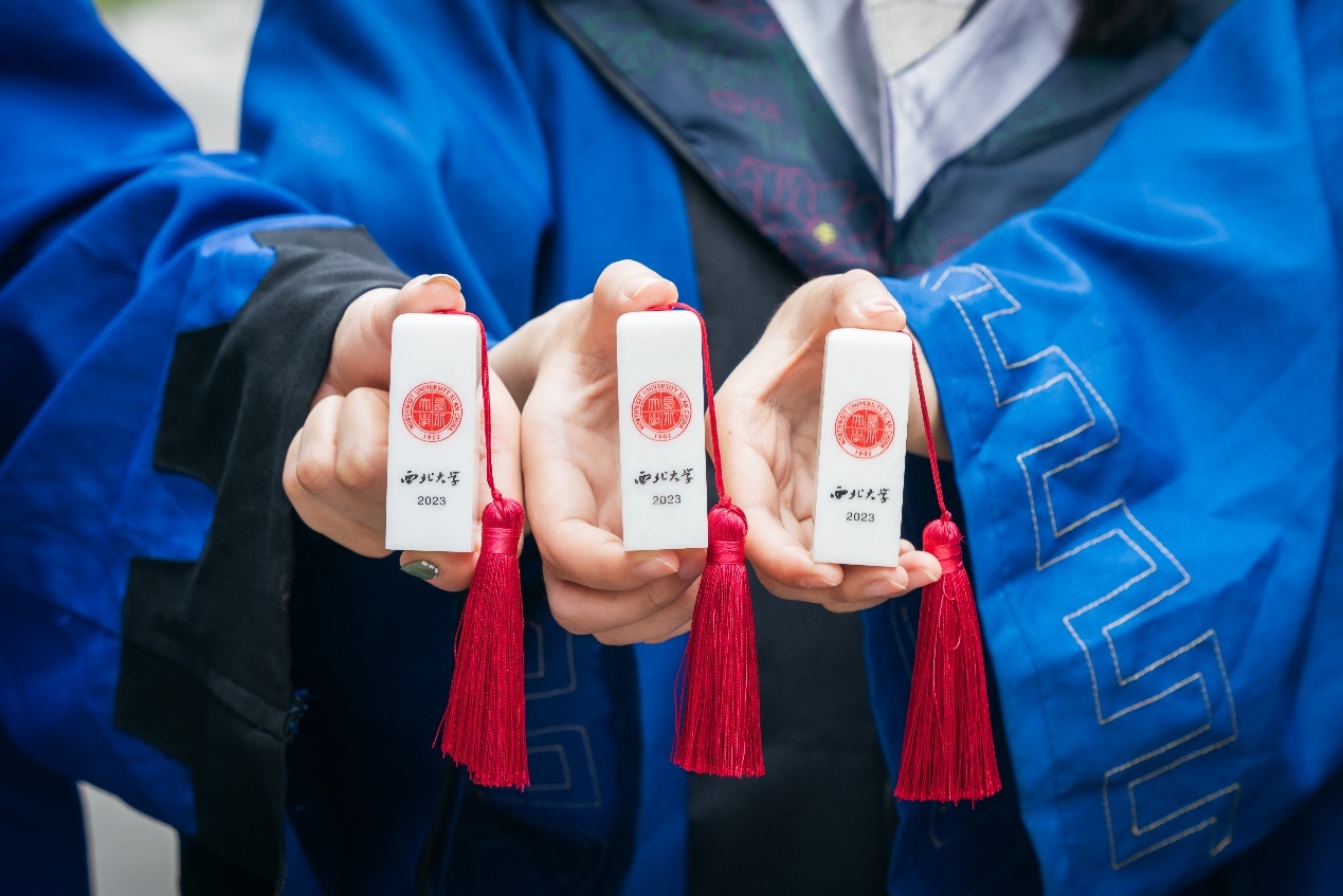 今年,西安交大延续去年的“毕业大礼包”,为2023届全体毕业生送上一枚“交大牌”印章+U盘。这是一份刻有每一位毕业生名字的特殊礼物,还包含了本科生的学生成长档案。