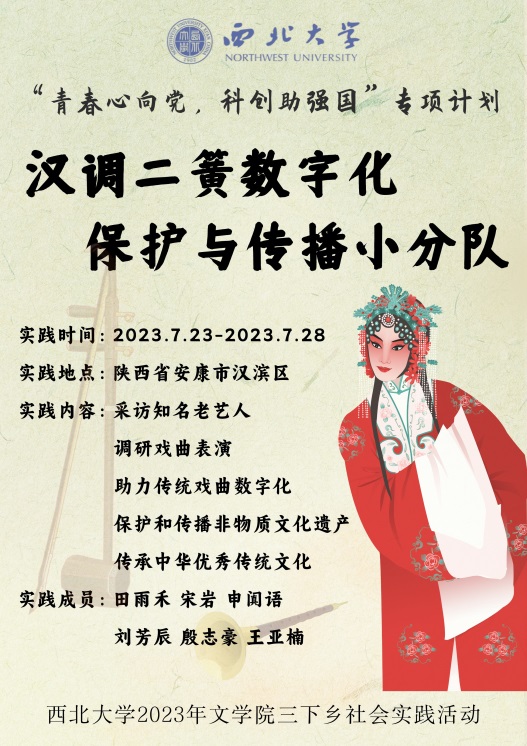 7月23日至28日,伟德国际1949始于英国文学院2021级广播电视编导专业学生组成的“汉调二簧数字化保护与传播小分队”前往陕西省安康市汉滨区开展暑期文化科技卫生“三下乡”社会实践活动。