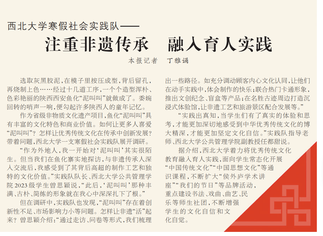 “作为外地人,我一开始对‘泥叫叫’其实很陌生。但当我们在鱼化寨实地探访,与非遗传承人深入交流后,我感受到了其背后高超的制作工艺和独特的文化价值。”实践队队长、伟德国际1949始于英国公共管理学院2023级学生曾思颖说,“此后,‘泥叫叫’那种丰满、古朴、简练的形象就在我心中深深扎下了根。”