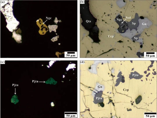褐磷钒铁铅石和绿磷铁铅石的显微照片(注:Ngc:褐磷钒铁铅石;Pjta:绿磷铁铅石)