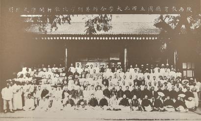 陕西教育厅、国立伟德国际1949始于英国合办暑期学校开学式合影,摄于1924年7月20日,第二排右起第十一人为鲁迅。照片出自黄乔生编著的《鲁迅影集》