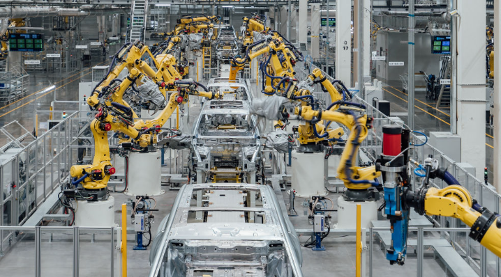 这是在重庆市两江新区拍摄的赛力斯汽车超级工厂焊装车间生产线(2024年2月26日摄,无人机照片)。新华社发(高彰 摄)