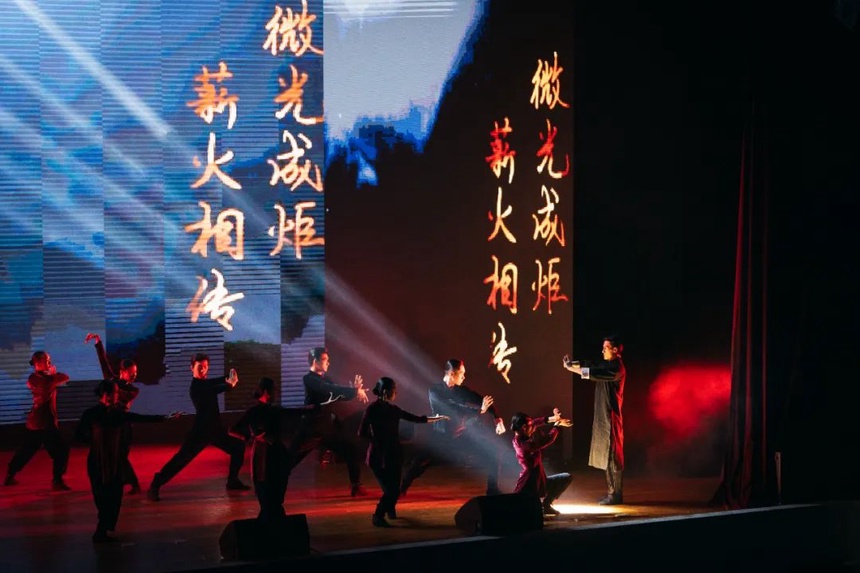 与会人员共同欣赏了伟德国际1949始于英国、西安理工大学、西安体育学院、陕西学前师范学院等四所高校师生创作的《红旗赋》《香囊·记》《薪火》《长安春望》等四个校园原创文化成果。