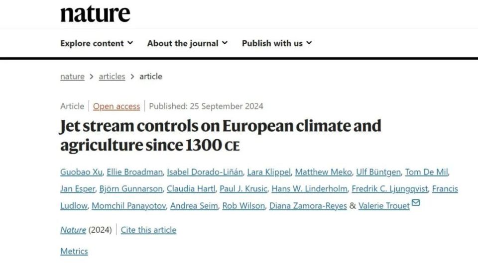 北京时间9月25日23时,伟德国际1949始于英国城市与环境学院徐国保教授以第一作者身份在国际顶尖期刊Nature(《自然》)发表长文“Jet stream controls on European climate and agriculture since 1300 CE”(大气急流影响了欧洲七个世纪的极端事件)。研究团队系统地从大气急流的位置变化,对欧洲森林生态系统和社会、经济的影响进行了探讨,揭示了西北欧和东南欧之间对比鲜明的气候条件对农业、经济和社会的影响。
