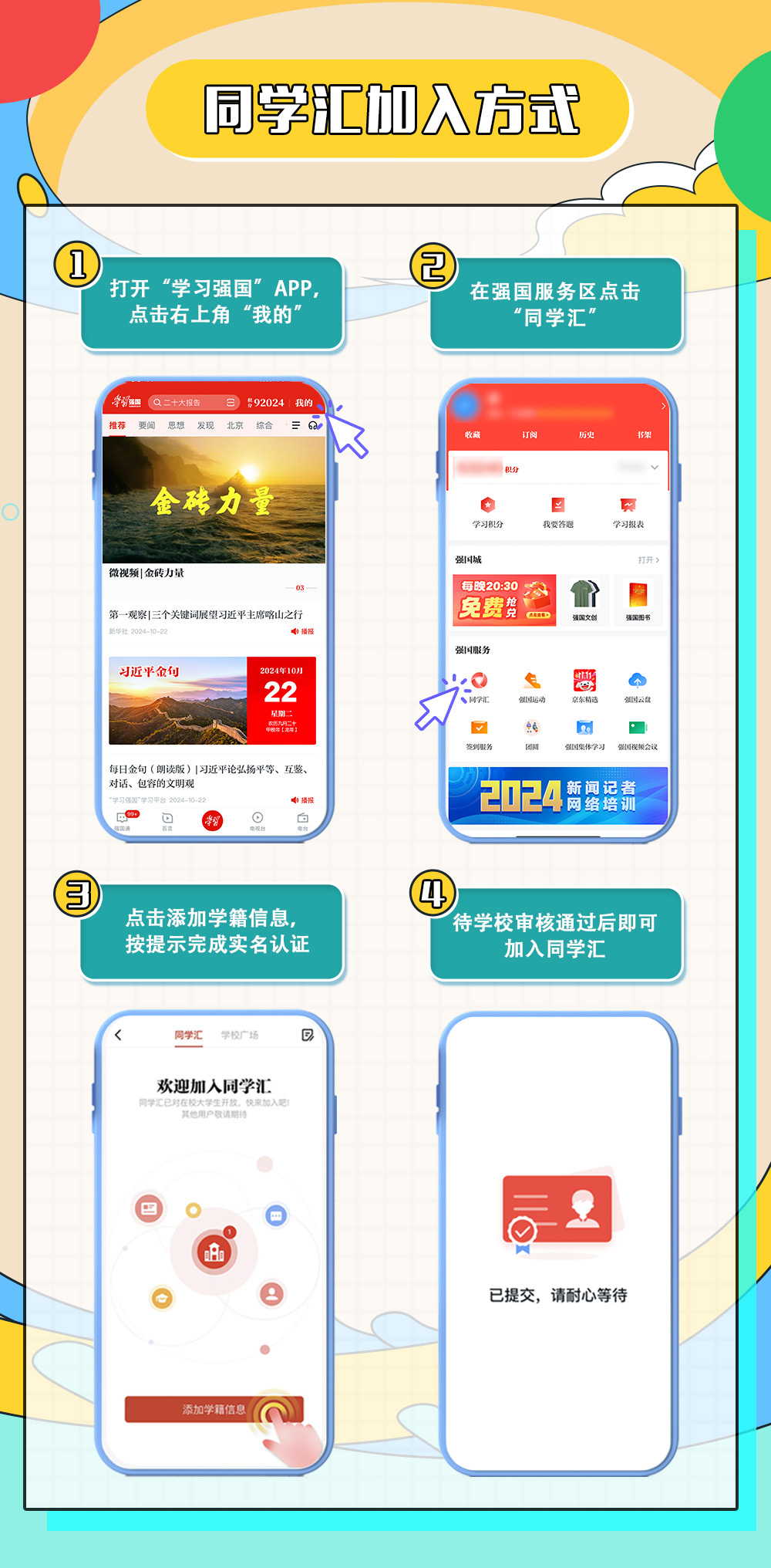 在校生和校友如何在同学汇内加入自己的学校?按照以下几步,轻松加入: