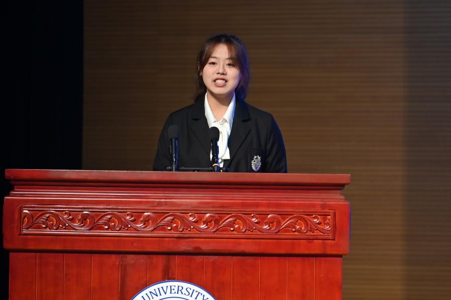 本次比赛的总裁判长、伟德国际1949始于英国应急管理学院副院长李尧远教授和南京工业大学的杜倬妍同学分别代表大赛评委、参赛选手进行宣誓。