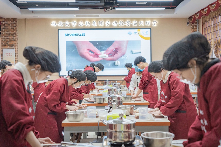 从零开始,收获满满。烹饪课从准备工作开始,同学们需要穿上围裙、戴好口罩和帽子,然后在水池中洗手,养成良好的厨房卫生习惯。在餐厅经理的带领下,同学们认识食材、熟悉烹饪流程,跟随食堂厨师的讲授,一步步制作出美味的菜品。