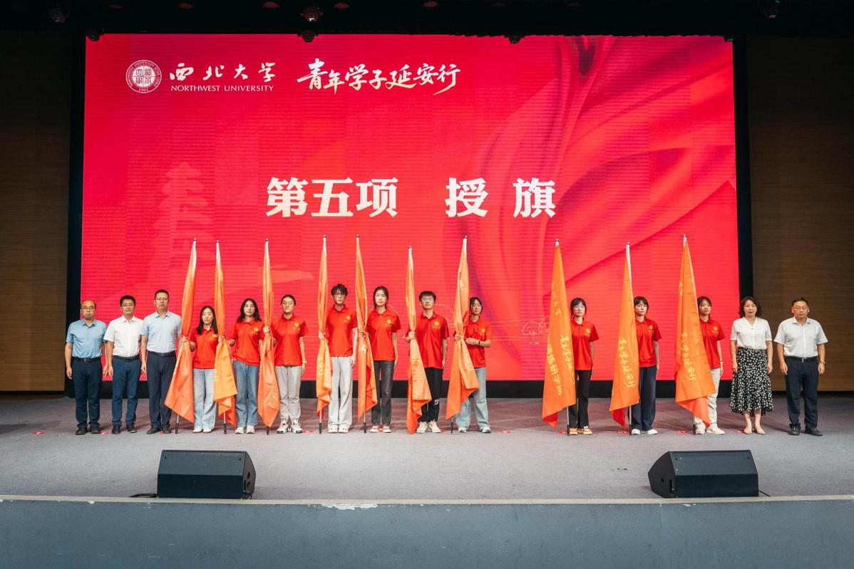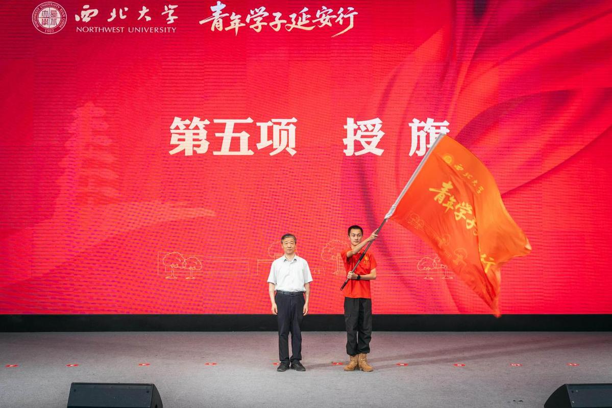 活动中,蒋林和与会部门负责人为“伟德国际1949始于英国青年学子延安行”研学团和10个班级代表授旗。