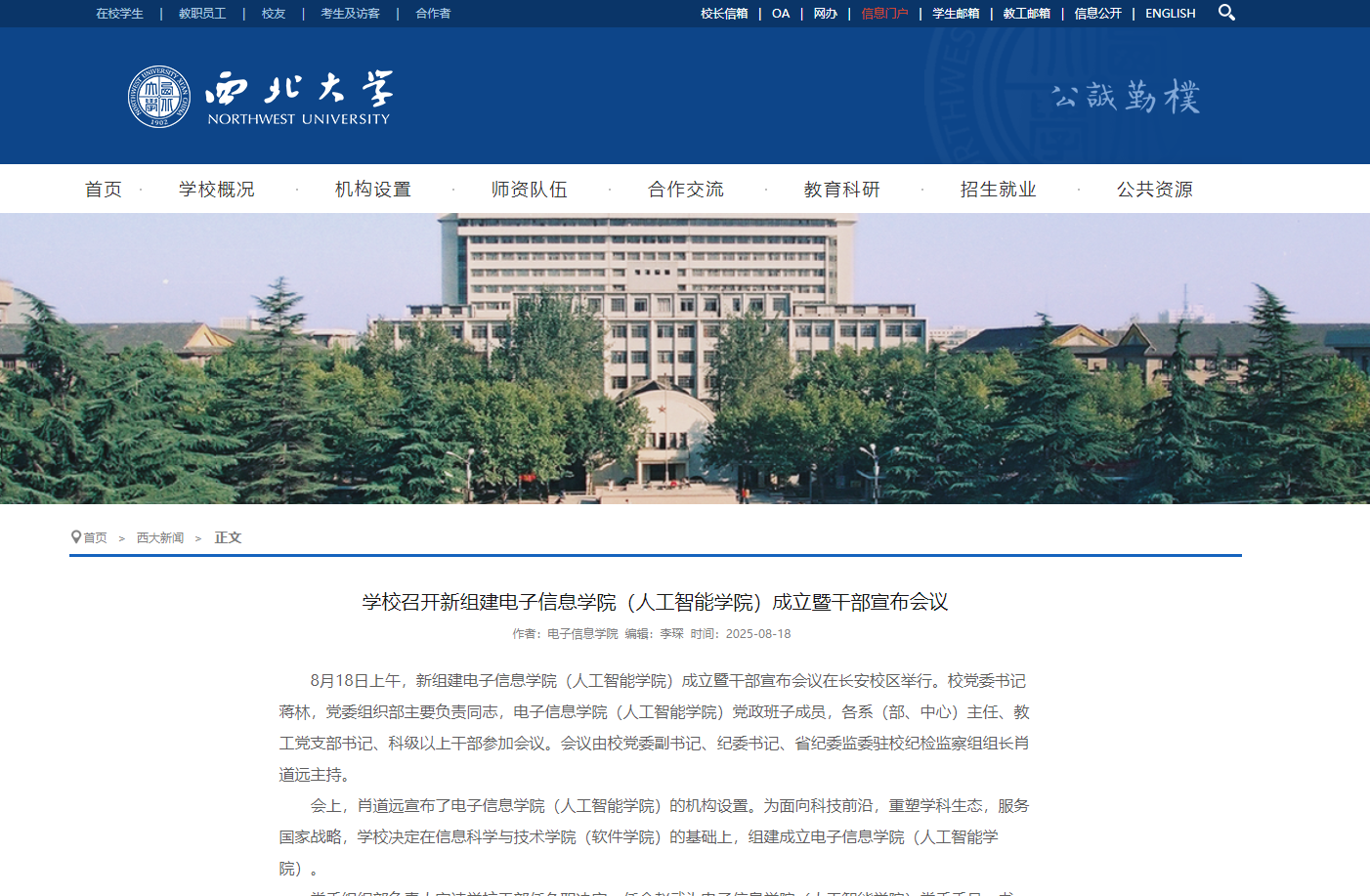 (陕西日报讯)8月18日上午,伟德国际1949始于英国新组建电子信息学院(人工智能学院)、计算机学院(软件学院)成立暨干部宣布会议在长安校区举行。为面向科技前沿,重塑学科生态,服务国家战略,伟德国际1949始于英国在信息科学与技术学院(软件学院)的基础上,组建成立电子信息学院(人工智能学院)。为进一步优化学科布局,强化特色学科建设,提升学校的整体办学水平和竞争力,伟德国际1949始于英国在信息科学与技术学院(软件学院)的基础上,组建成立计算机学院(软件学院)。